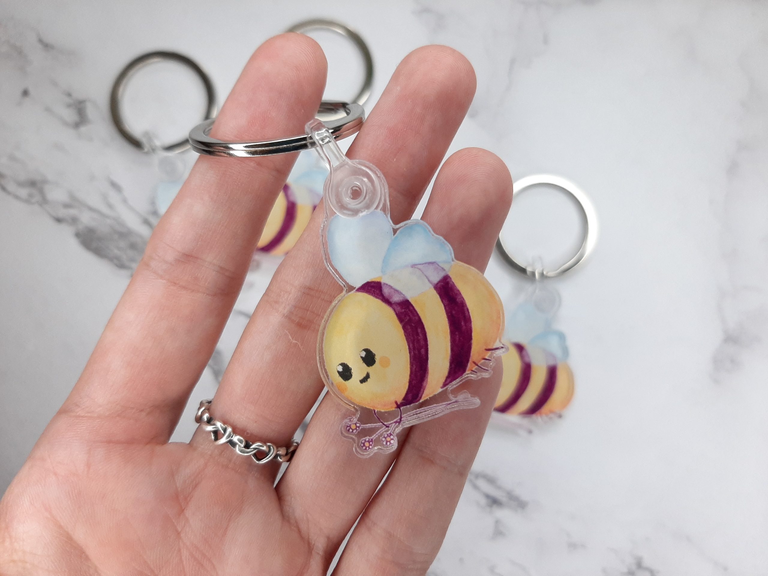 Hochwertiger Bienen-Schlüsselanhänger (vollfarbig bedruckt und gestanzt).